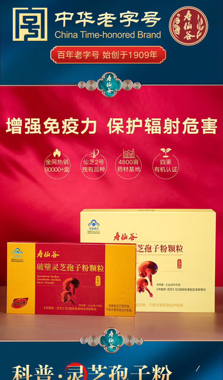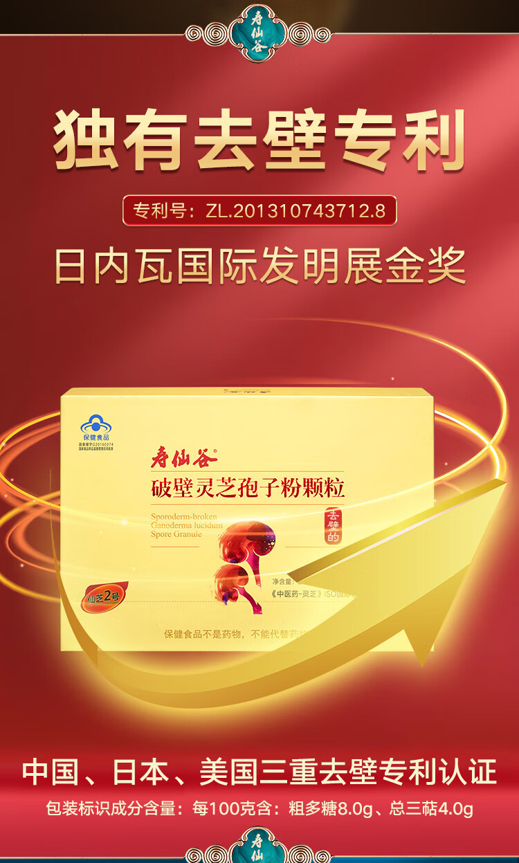 寿仙谷官方商城 寿仙谷第三代去壁灵芝孢子粉颗粒2.0g/包*90包