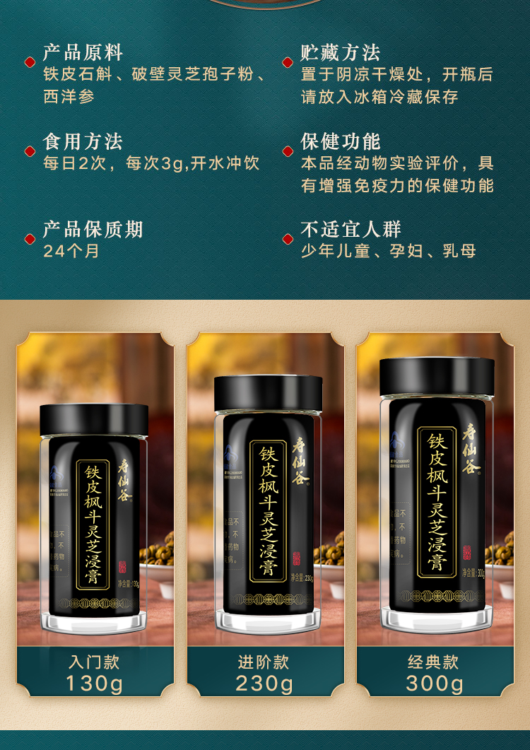 寿仙谷官方商城 和氏璧级养生珍品寿仙谷牌铁皮枫斗灵芝浸膏 130g/瓶 增免疫膏方