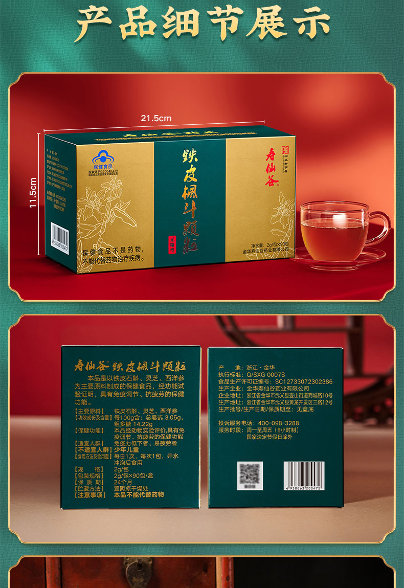 寿仙谷官方商城 寿仙谷牌铁皮枫斗颗粒 不含糖 抗疲劳 2g*16包/盒